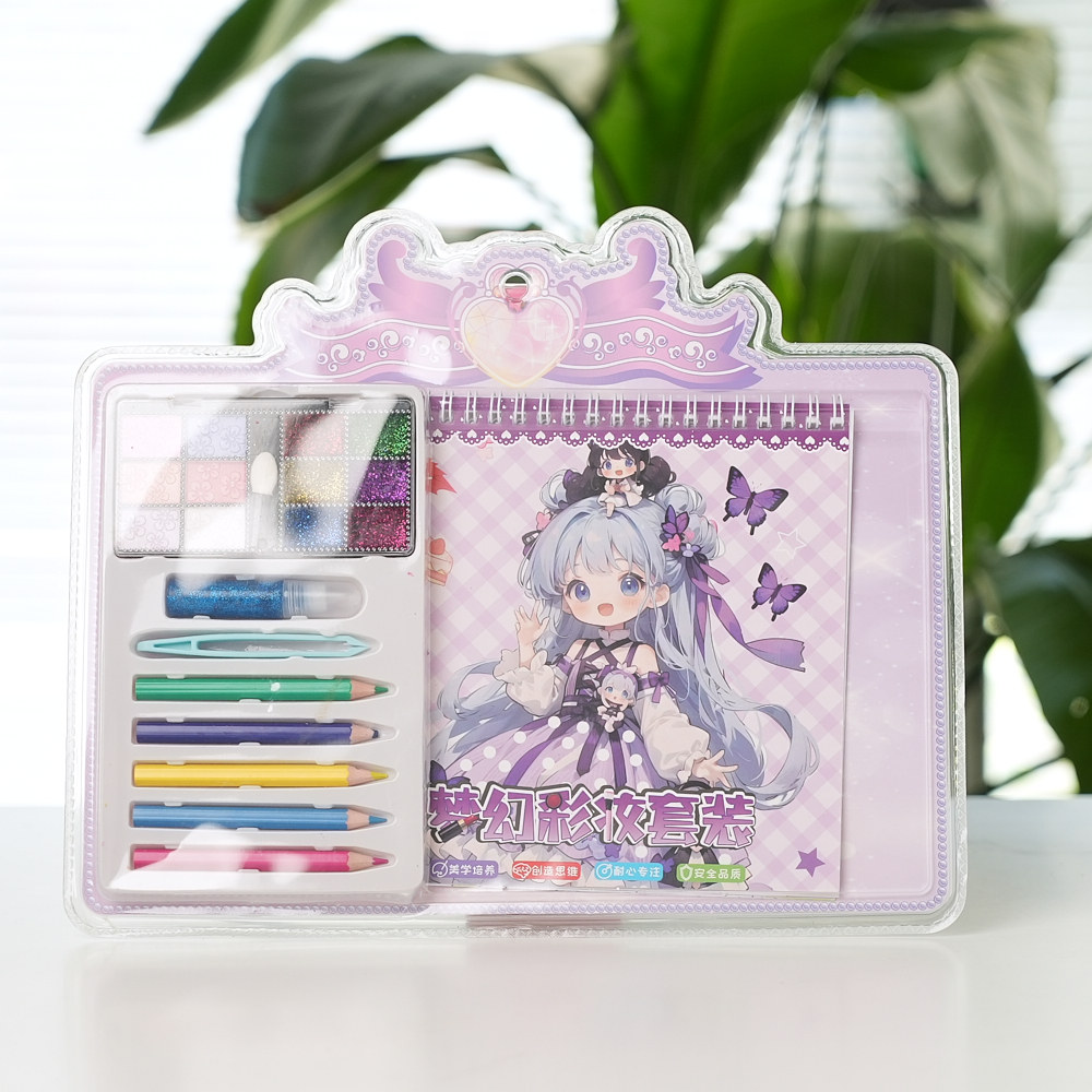 这是一款名为“伊贝琳手帐手办日记”的手帐套装。 1. 外观设计: - 整个套装的包装以粉色为主色调,充满了少女心。包装上有可爱的卡通人物和各种装饰元素,如星星、花朵和蝴蝶结...